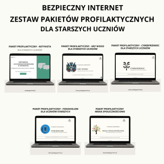 Zestaw pakietów profilaktycznych CYBERPRZEMOC (dla młodszych i starszych uczniów), w którym znajduje się: